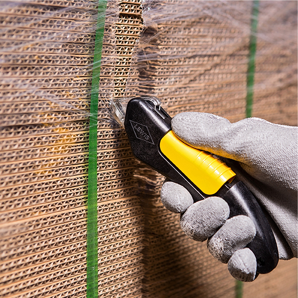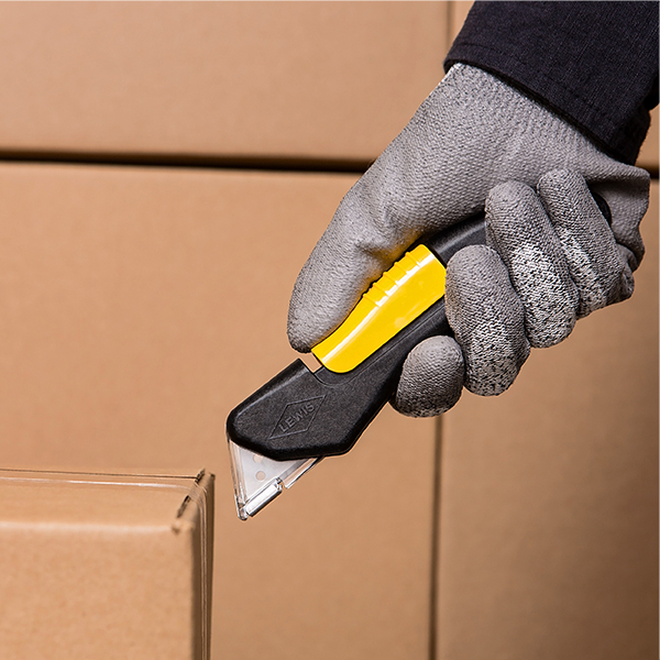 Industrial-grade design with auto-locking safety hood that helps protect the user from blade exposure.